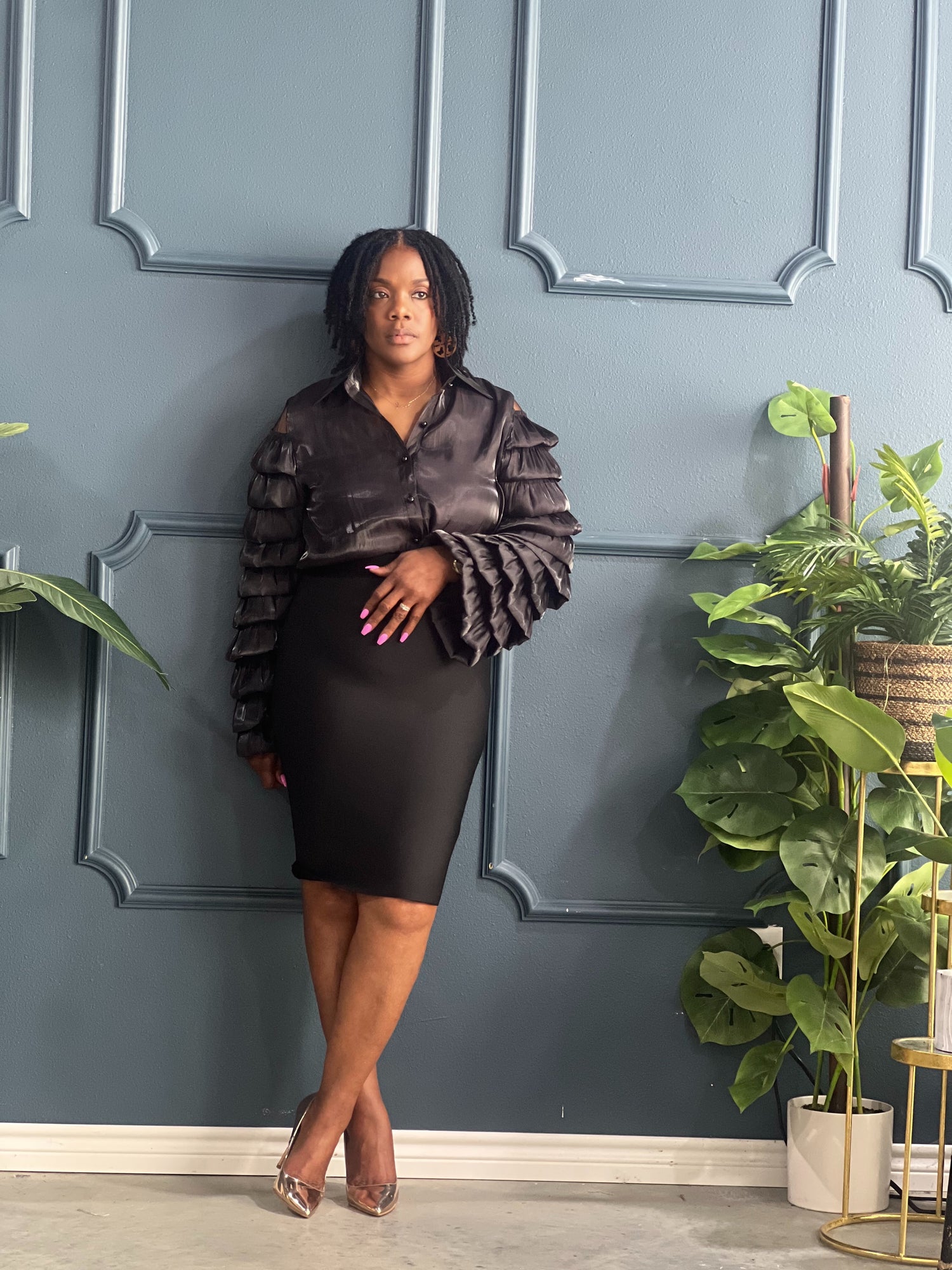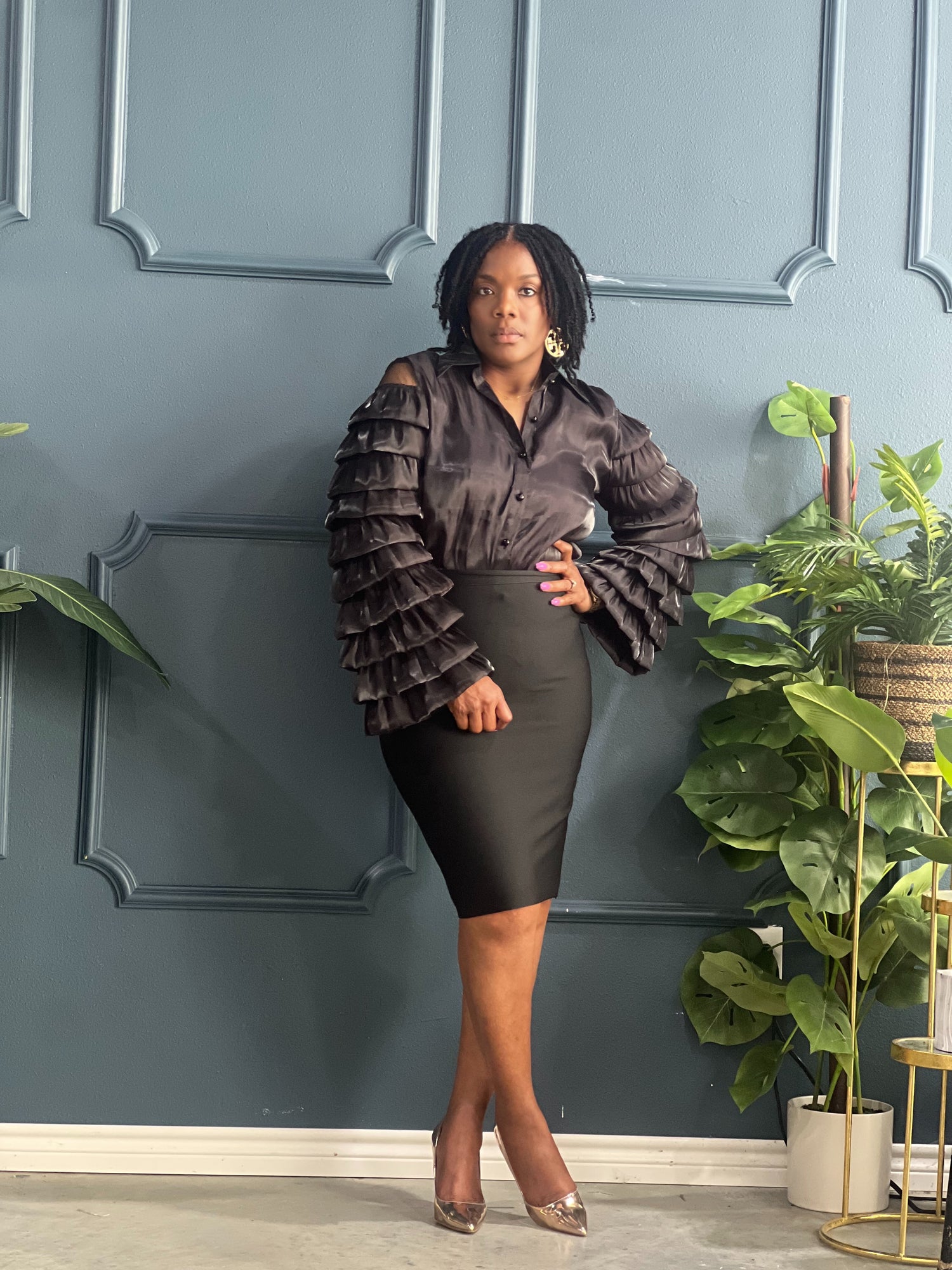 Black Layered Sleeves Blouse Plus
