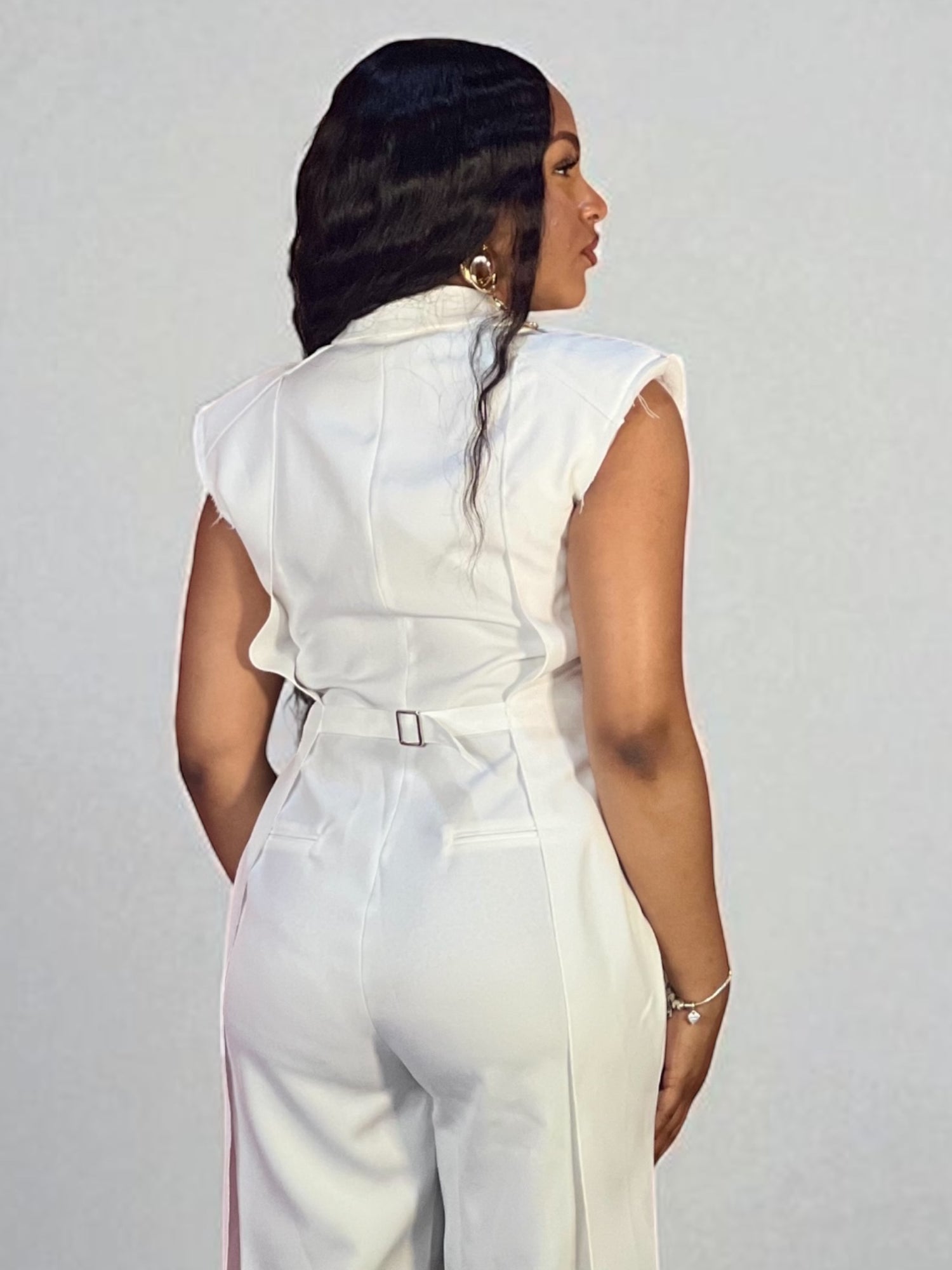 No stretch; front closure; distressed shoulder with unfinished look; model is 5’6 wearing large