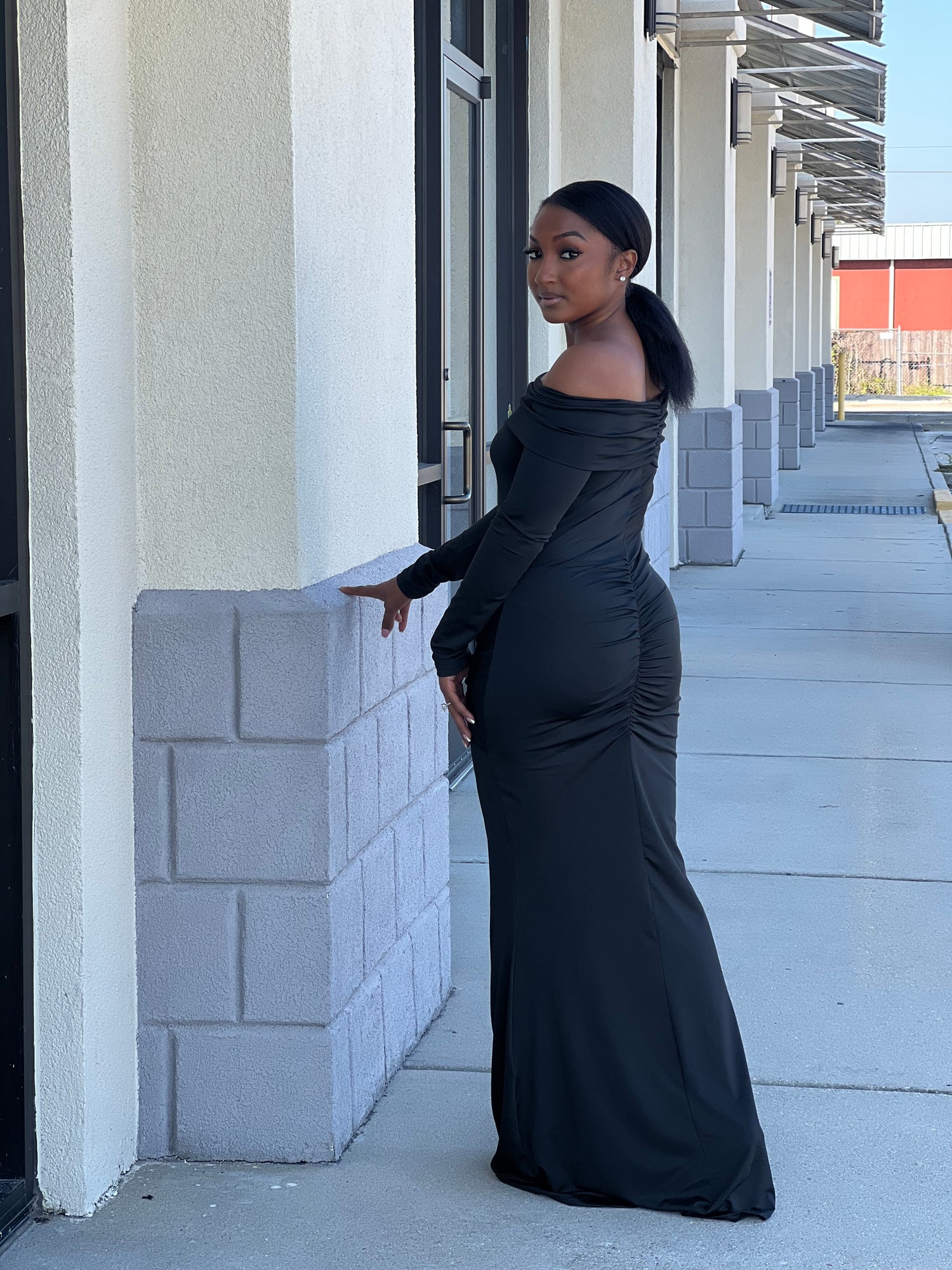 Off The Shoulder Maxi Dress (Black)