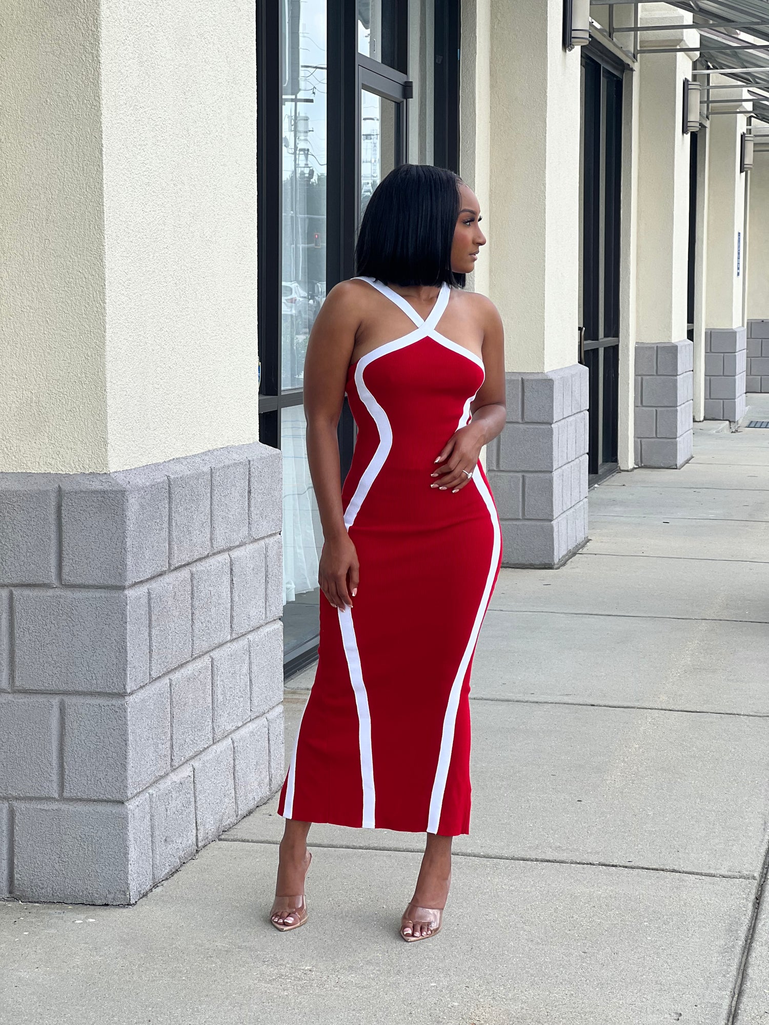 Stretch; pullover; midi with back split; sweater stretching; model is 4’10 wearing small