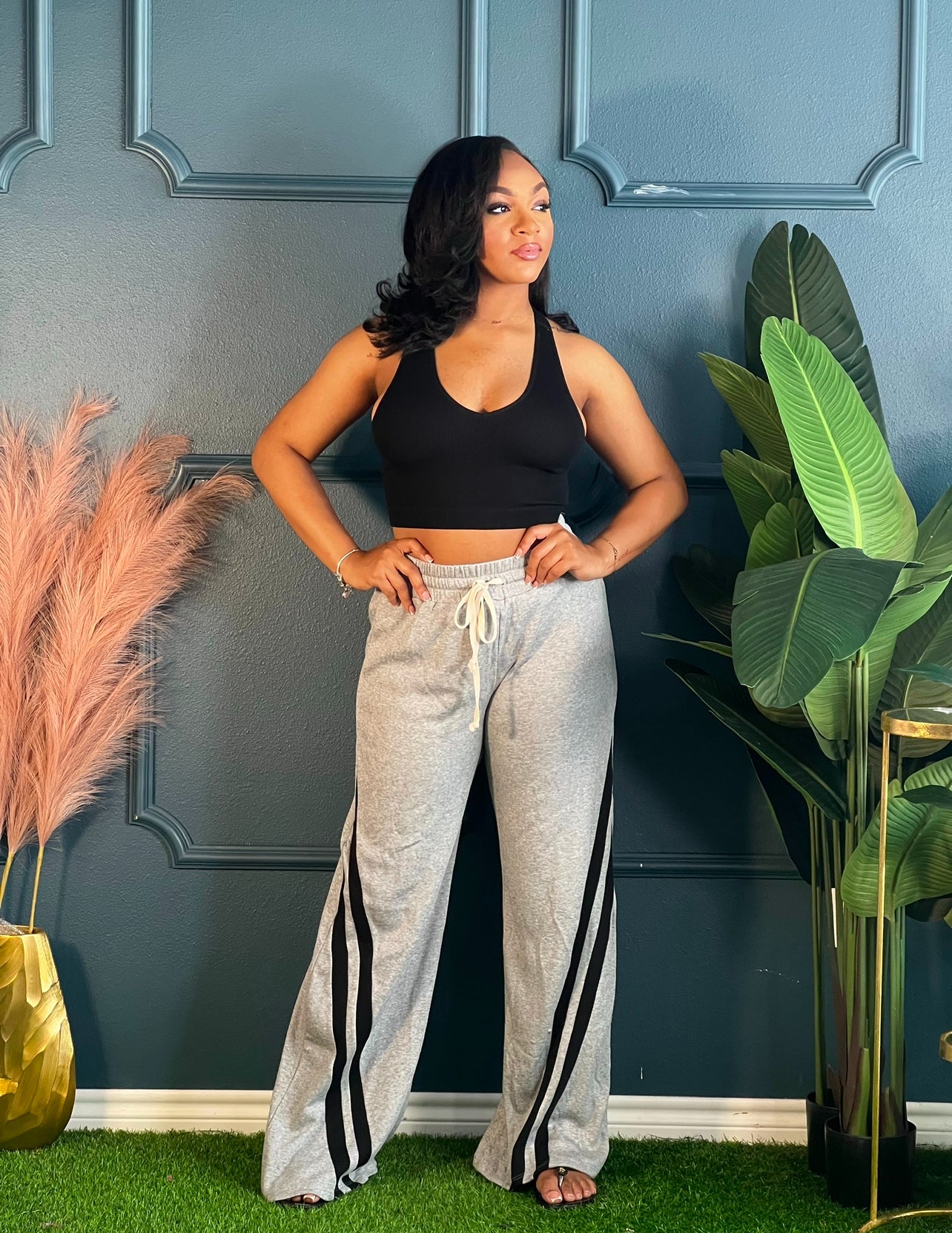 Stretch; elastic waist with drawstring; model is 5’6 wearing medium