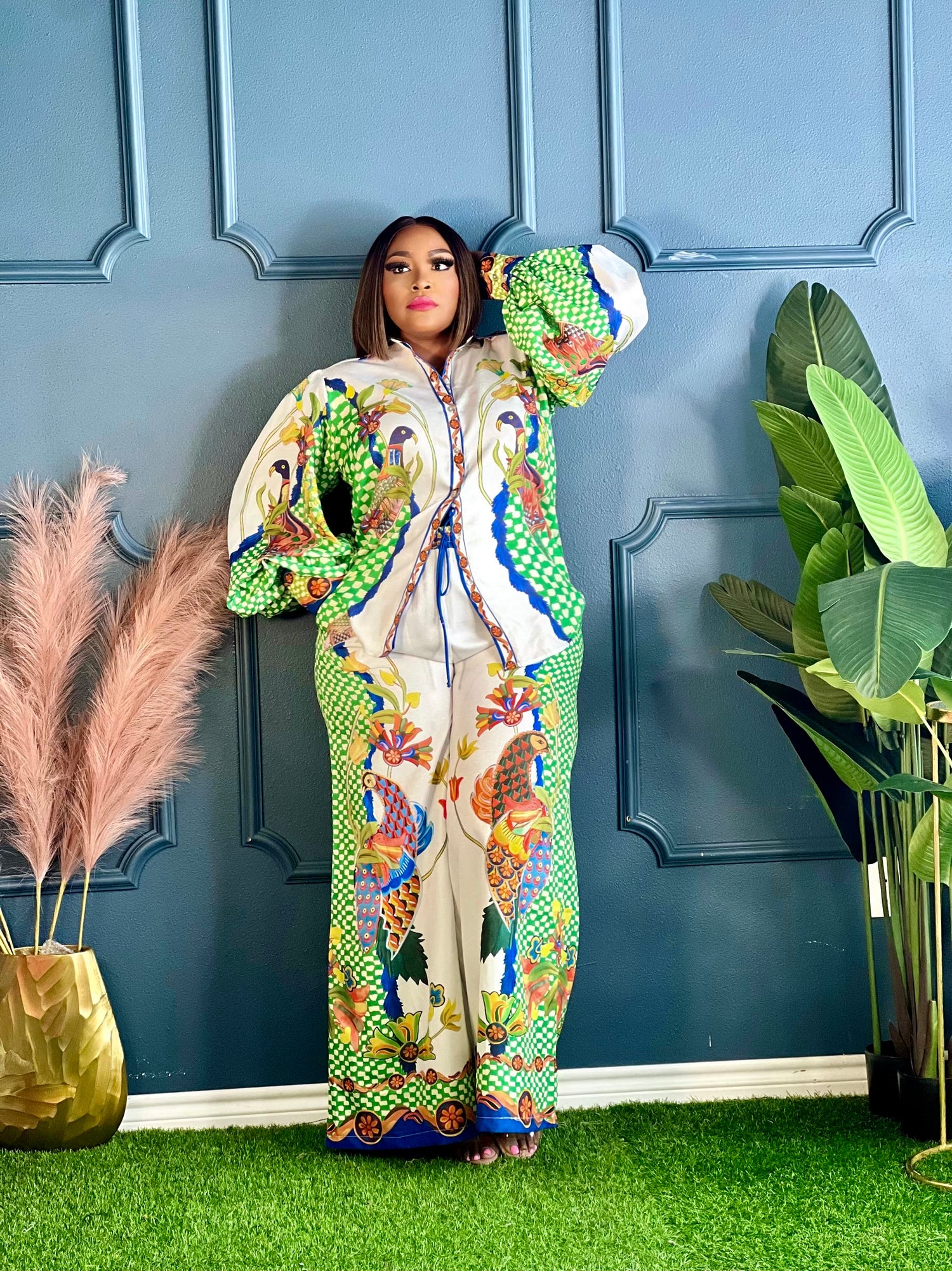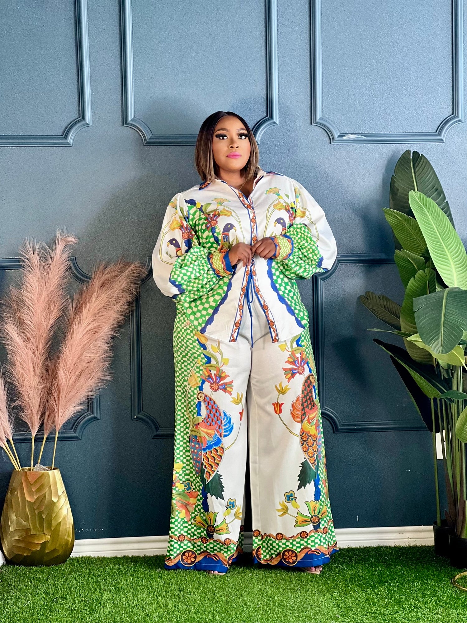 No stretch; elastic drawstring waist; wide leg; model is 5’7 wearing 2X