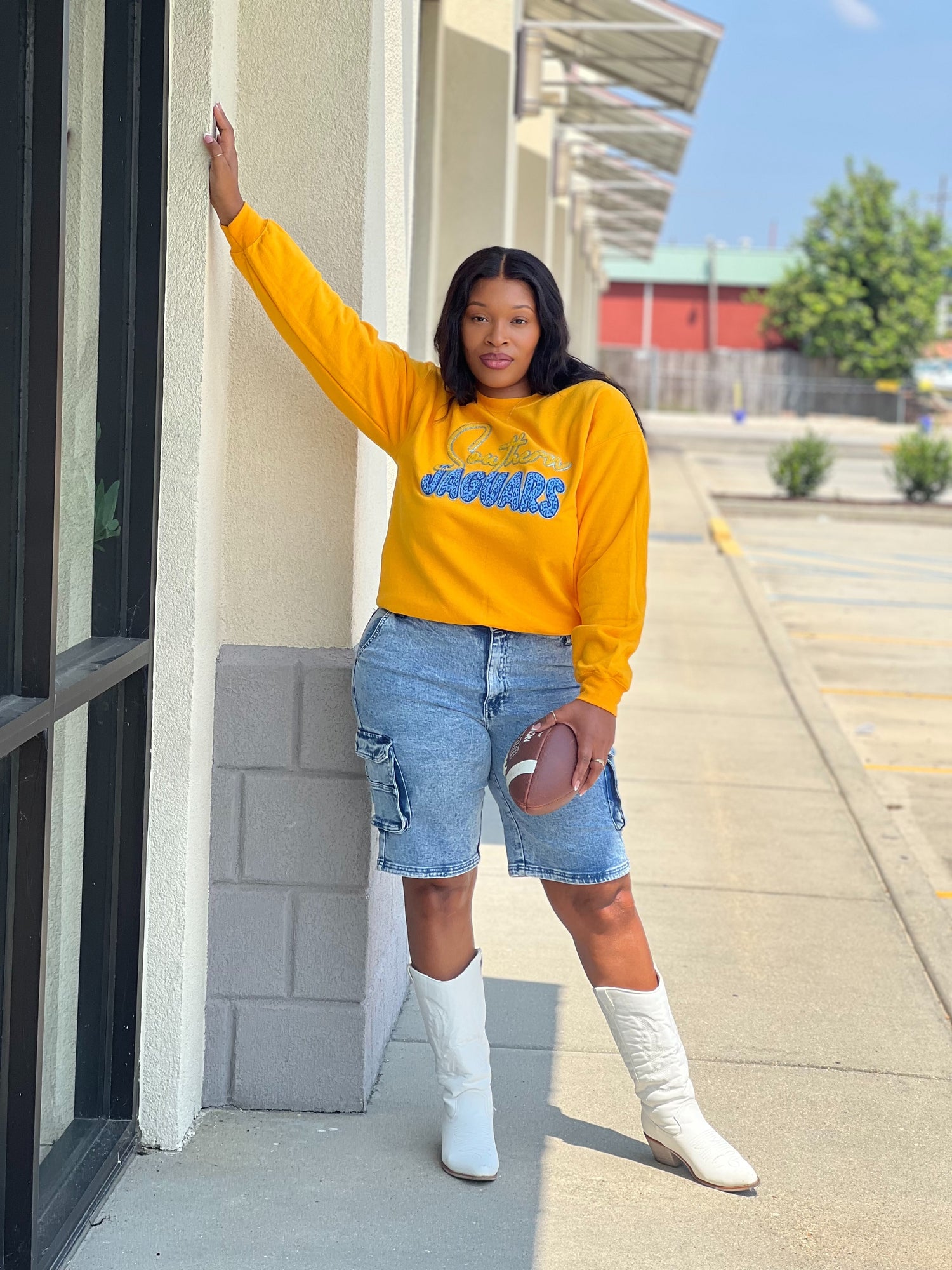 Stretch; pullover; good quality; shirt is tucked for a crop look; model is 5’9 wearing large
