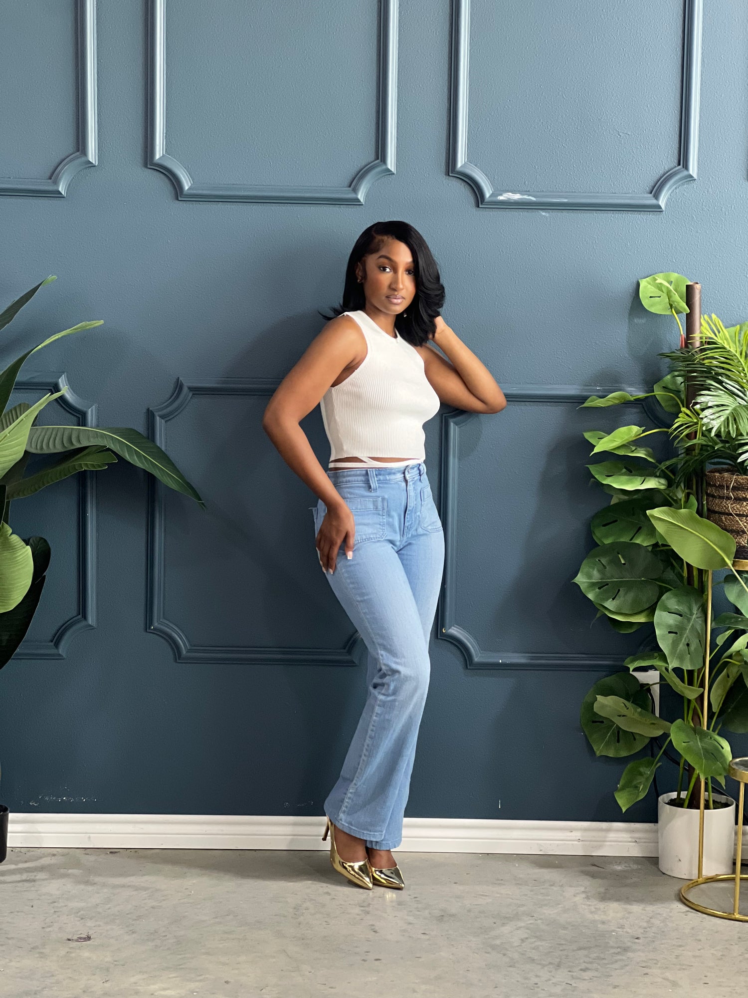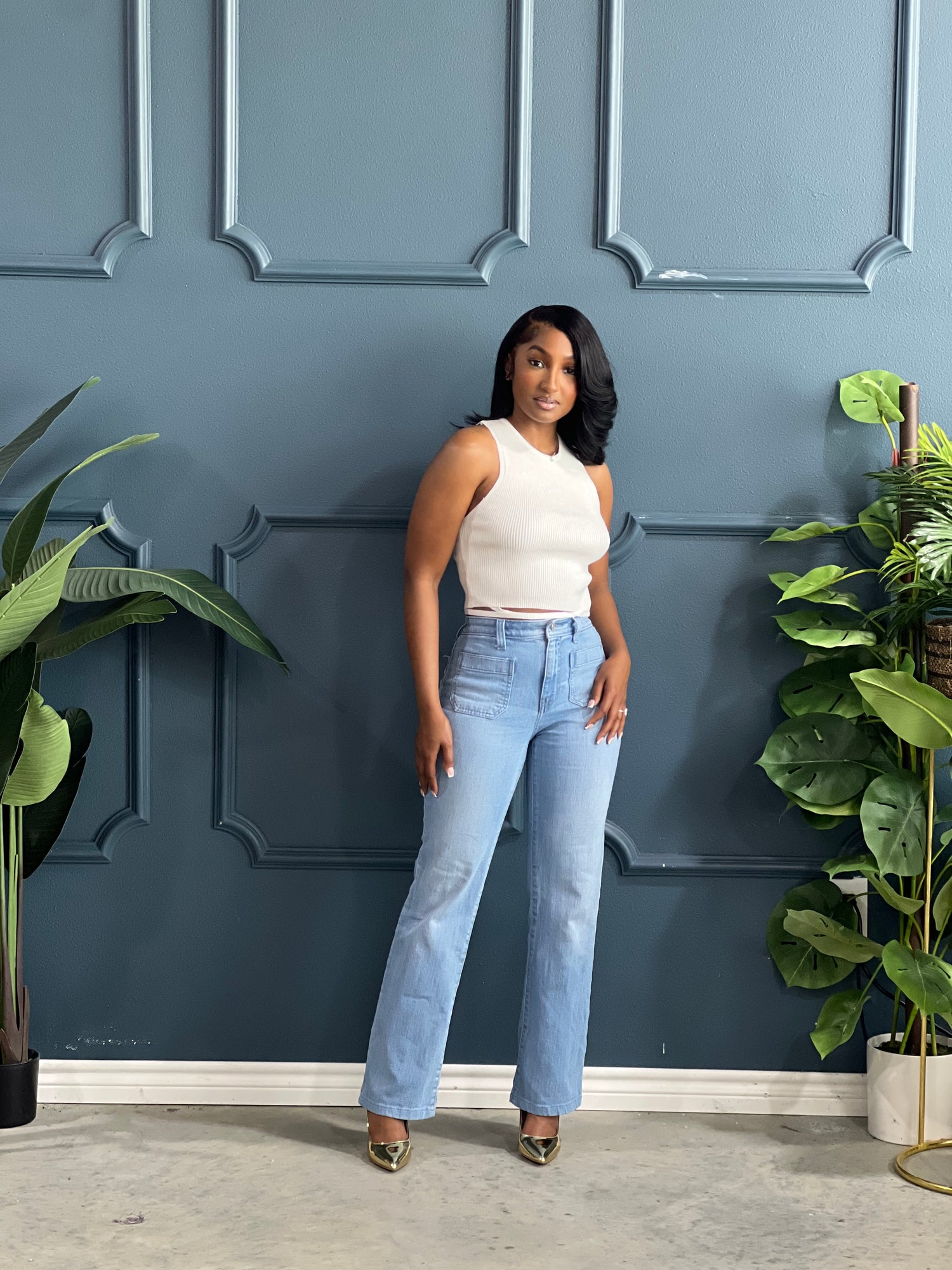 Stretch; pullover with wrap tie; model is 4’10 wearing small