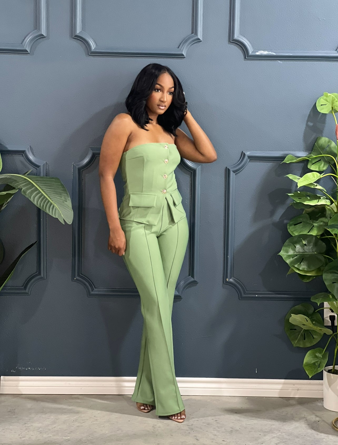 Stretch; pull on top and pants with stretch waist band; model is 4’10 wearing small
