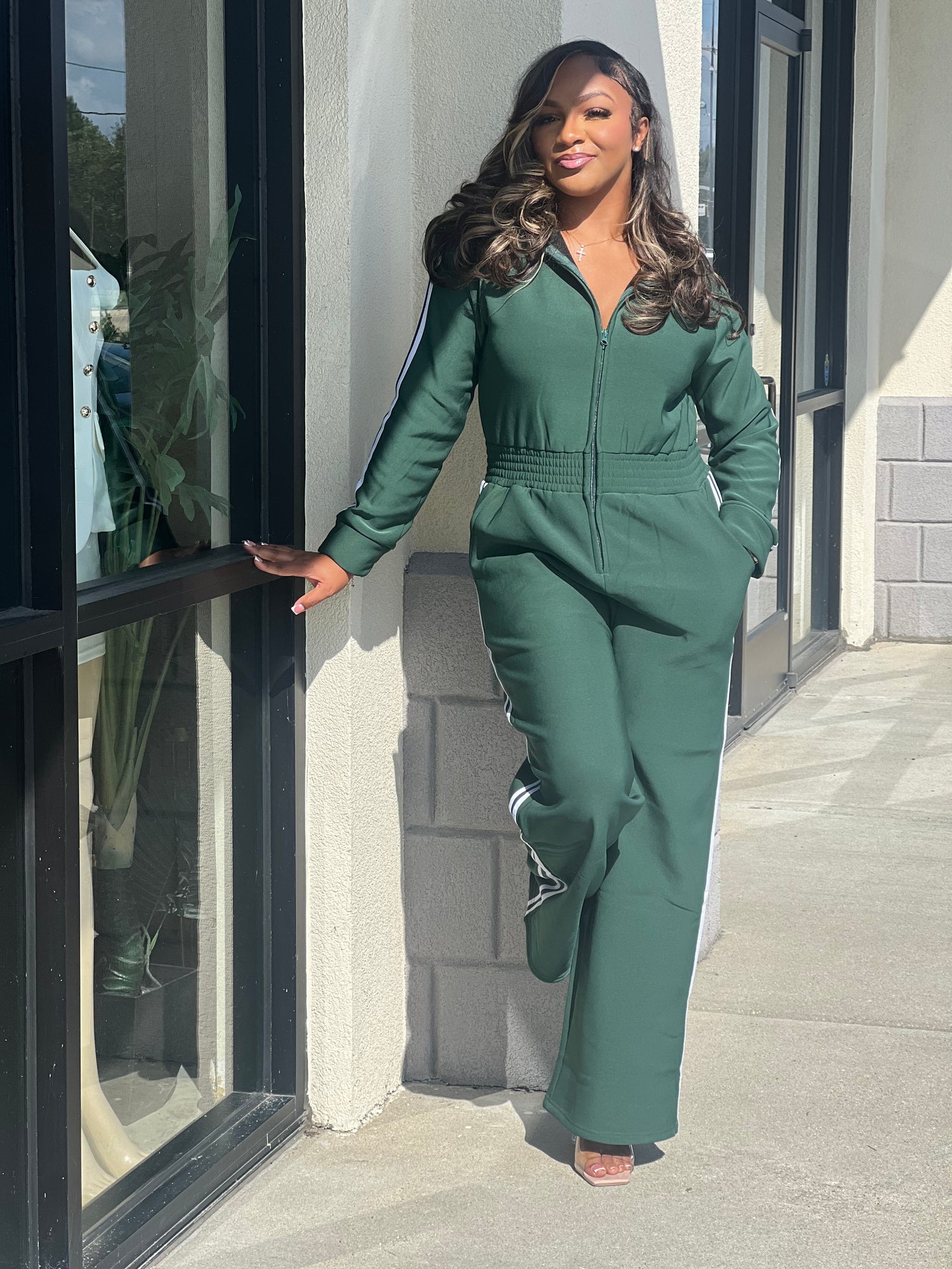 Zip-up Hooded Jumpsuit-Green